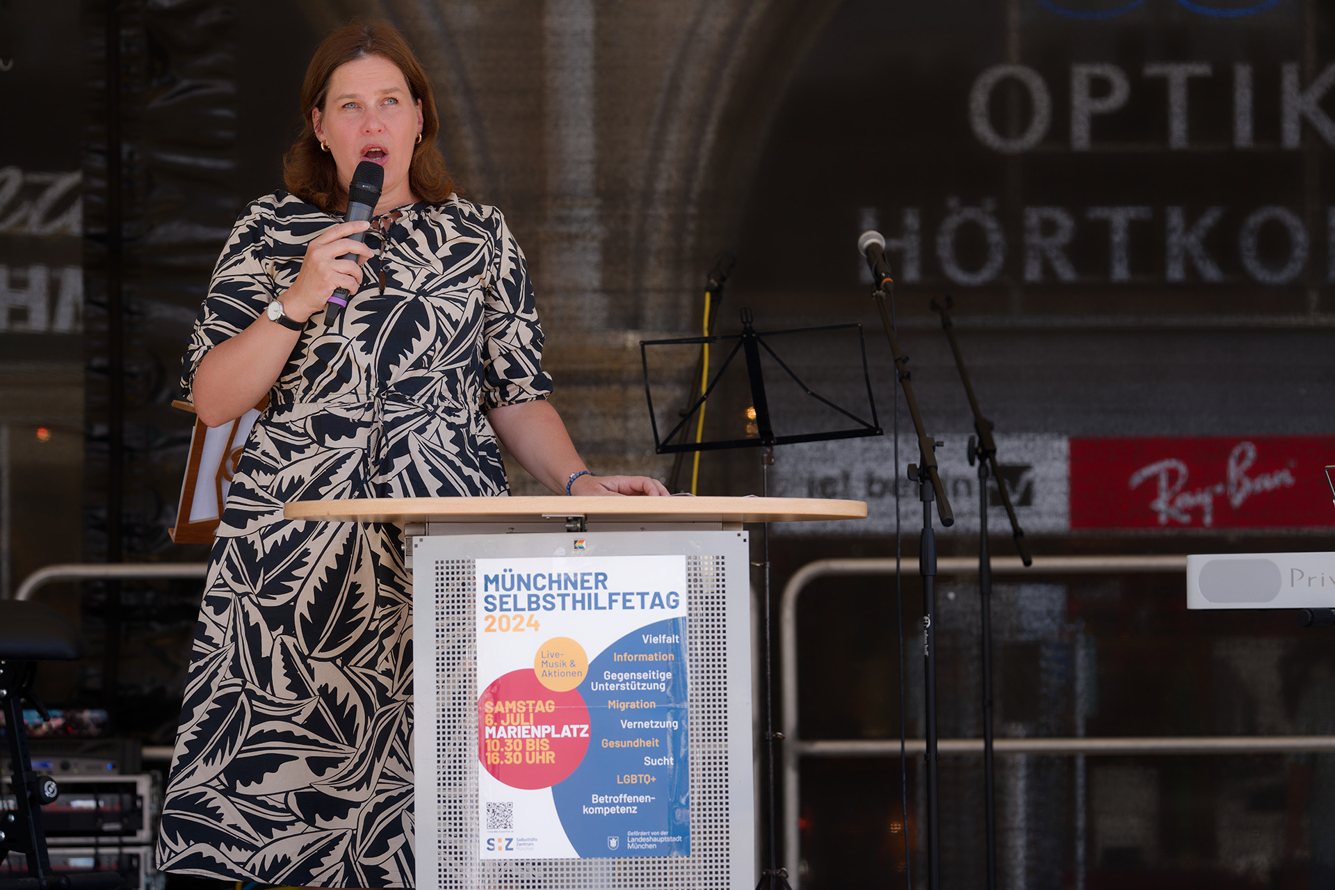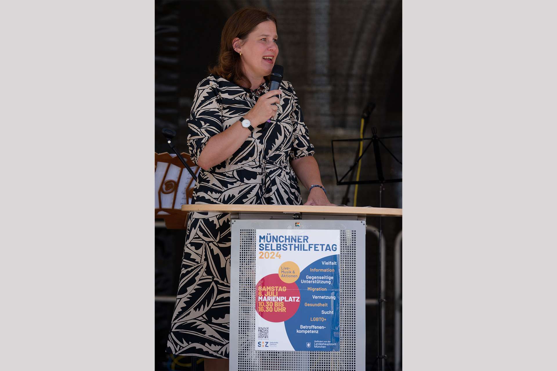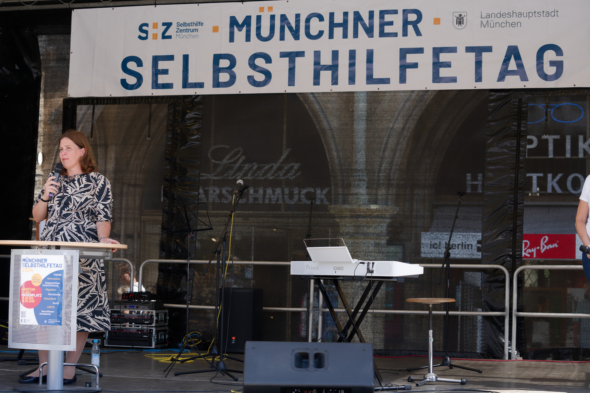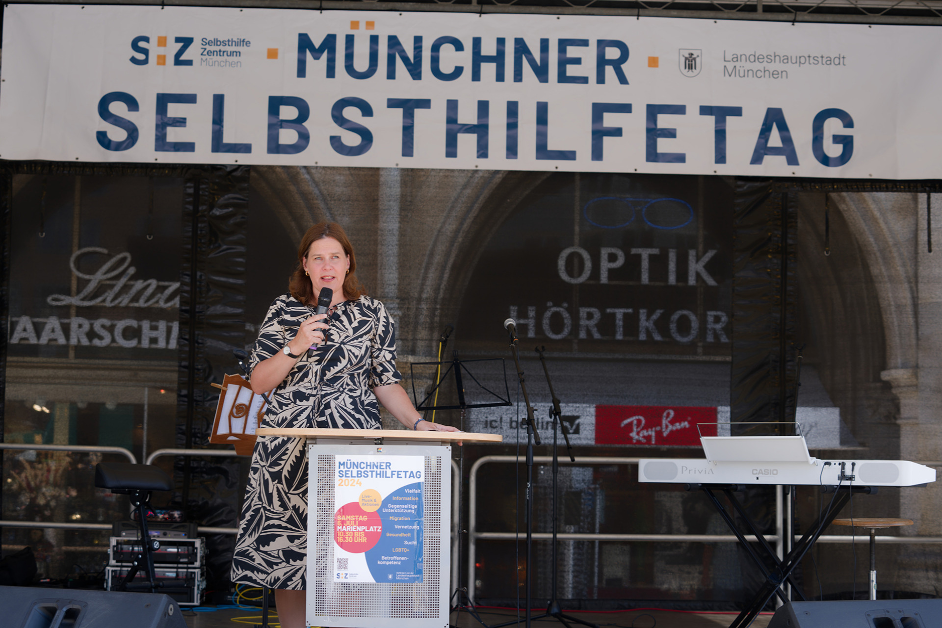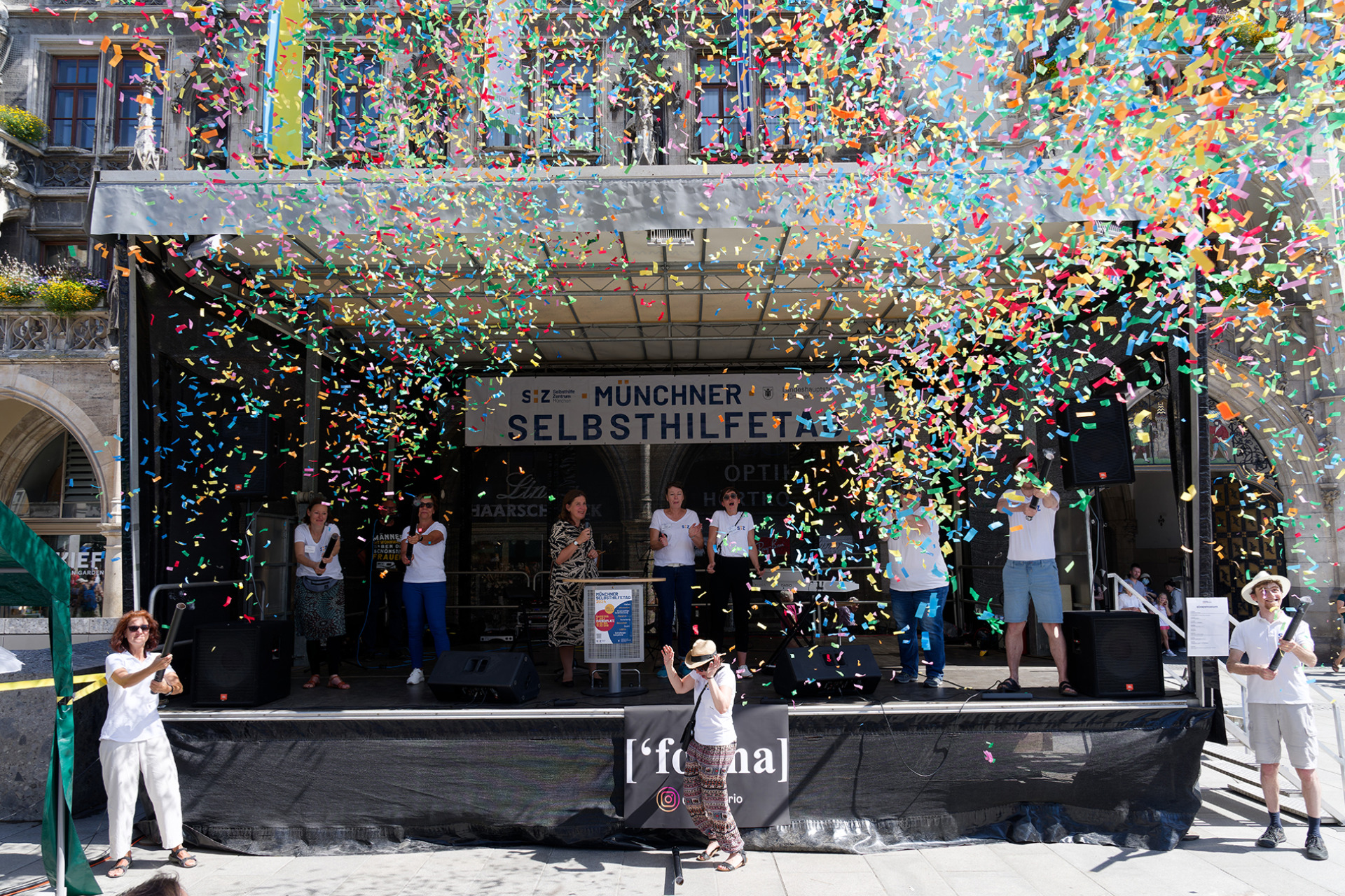 Verena Dietl, die 3. Bürgermeisterin, würdigte in ihrer Eröffnungsrede die unverzichtbare Arbeit der vielen Engagierten aus der Selbsthilfe. Mit einem Eröffnungscountdown und einem bunten Knall der Konfettikanonen wurde der Tag eröffnet.