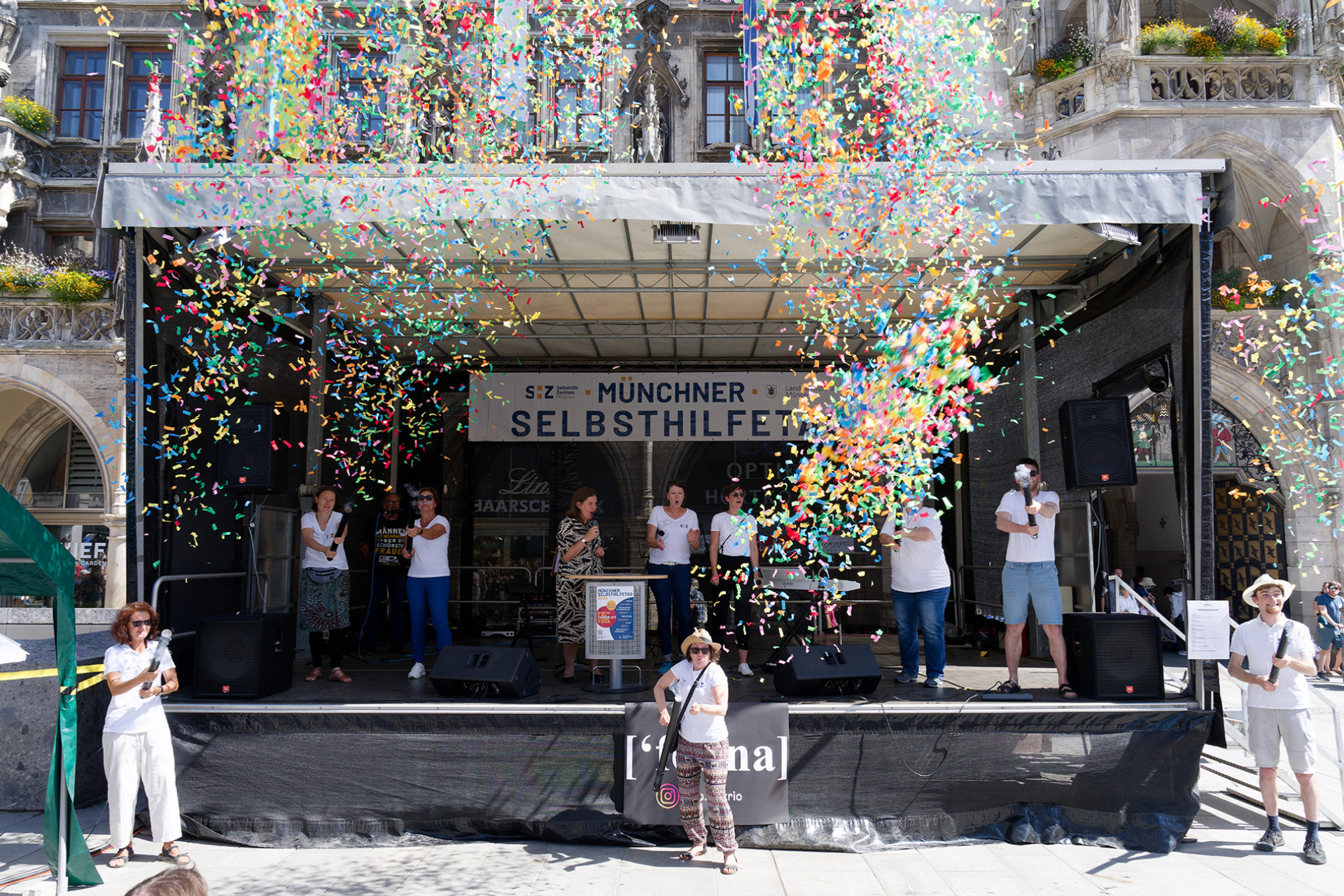 Der Münchner Selbsthilfetag 2024 fand am 6. Juli auf dem Marienplatz statt und er war ein voller Erfolg!
