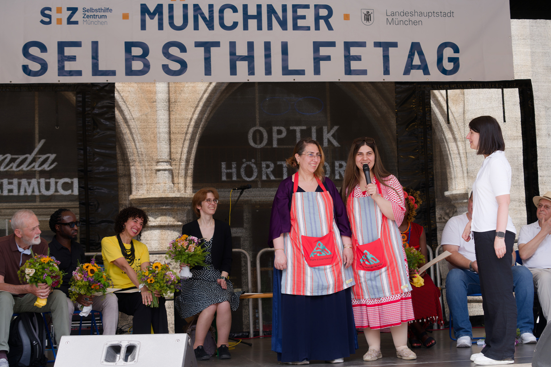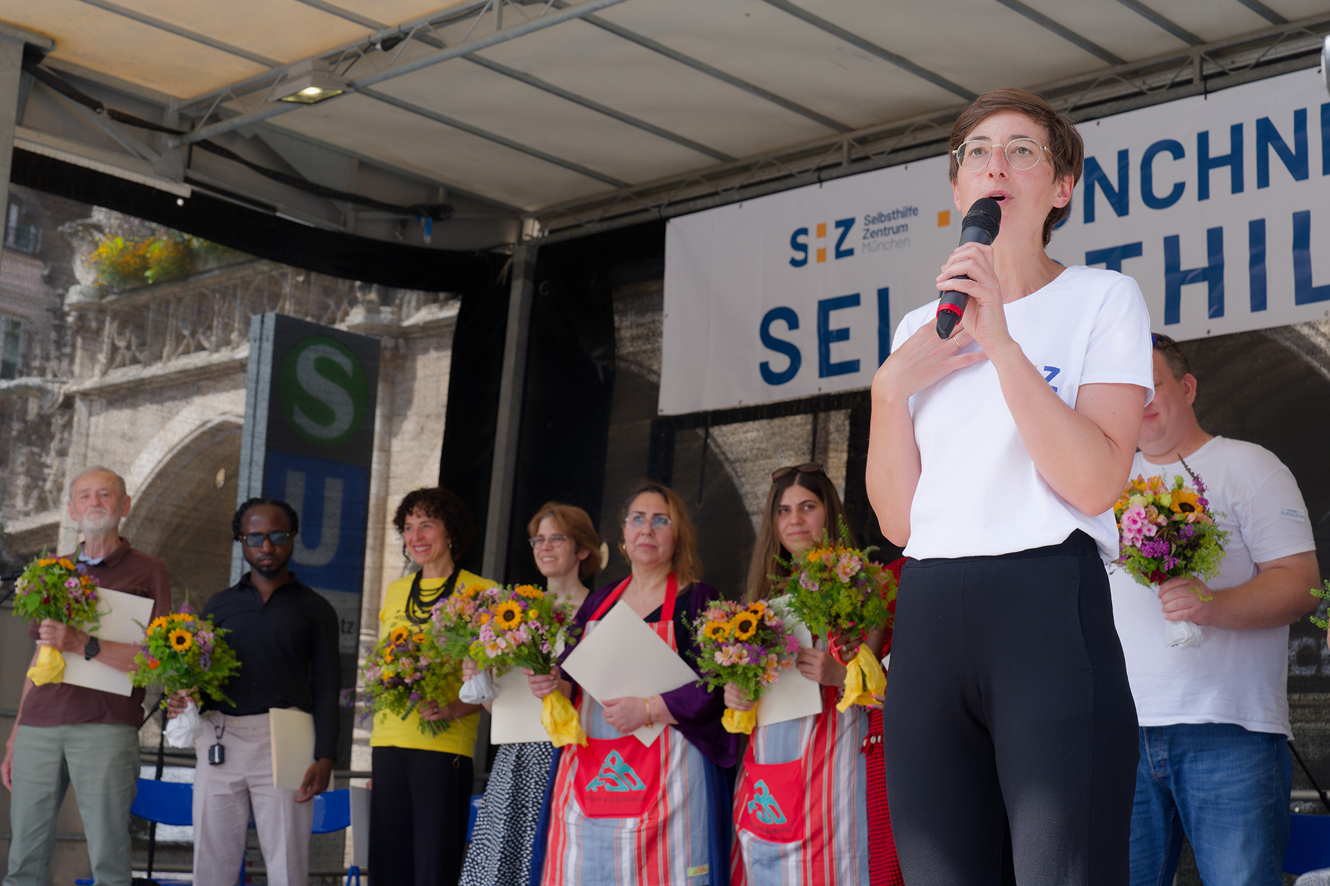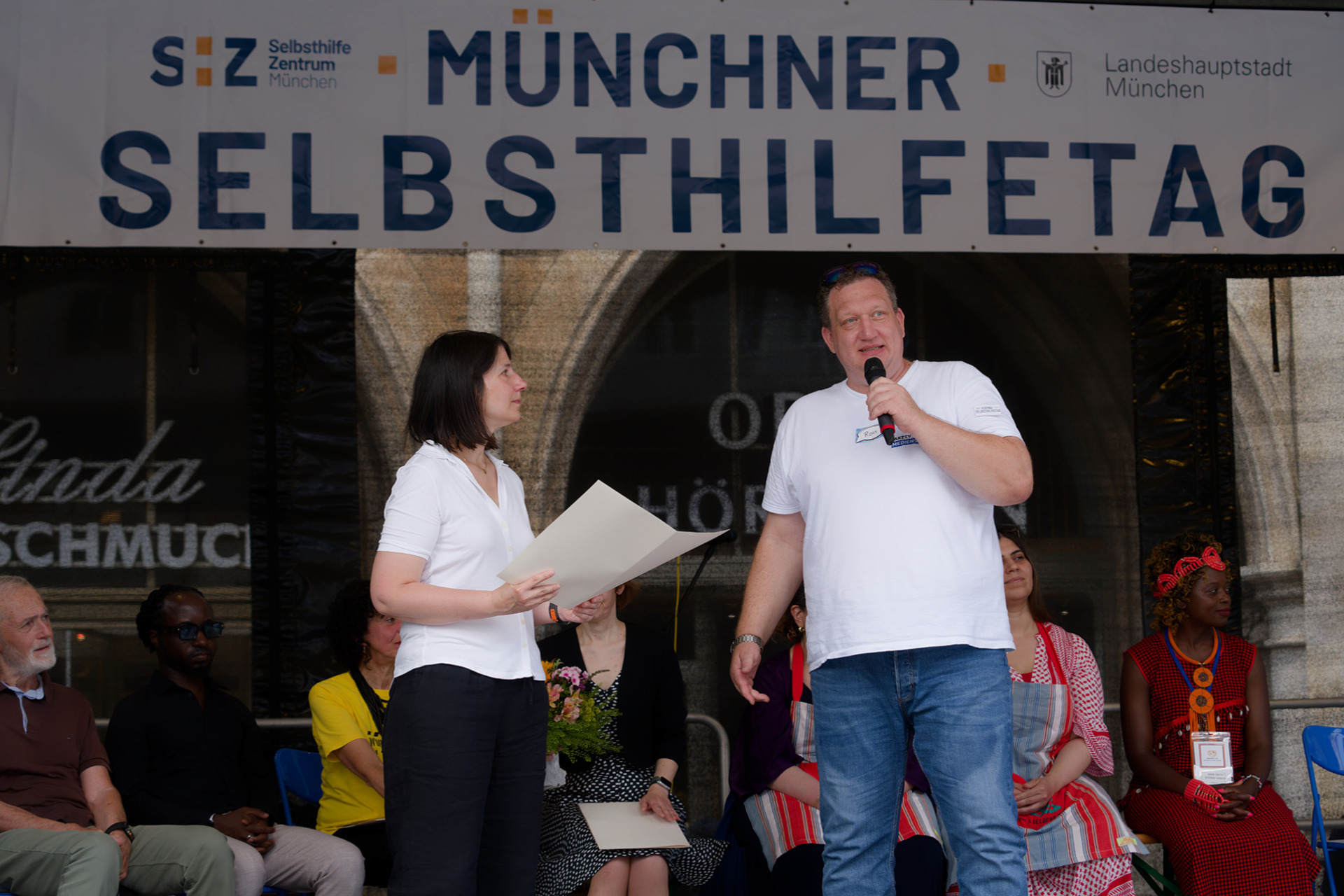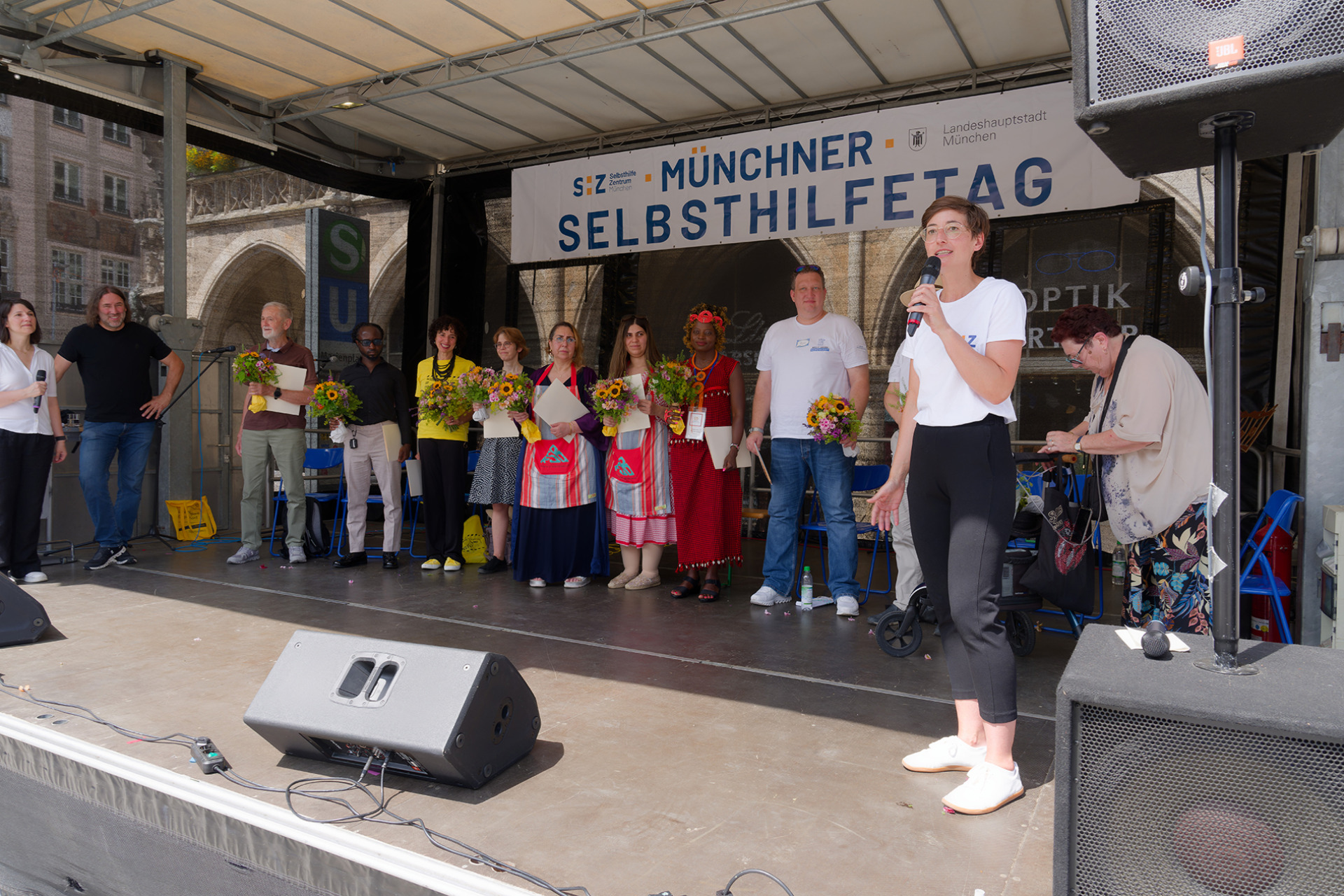 Ein Höhepunkt war die Verleihung von „München Dankt“: Dabei wurden zehn Engagierte aus der Münchner Selbsthilfe für ihre außergewöhnliche ehrenamtliche Tätigkeit geehrt. Verliehen wurden die Urkunden von zwei Stadträt*innen: Anne Hübner, Fraktionsvorsitzende der SPD Volt Fraktion, und Roland Hefter, SPD Volt Fraktion.