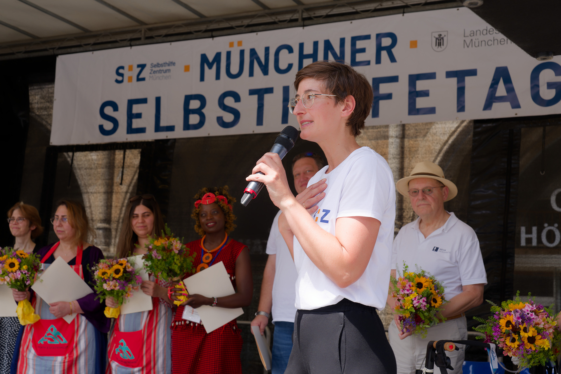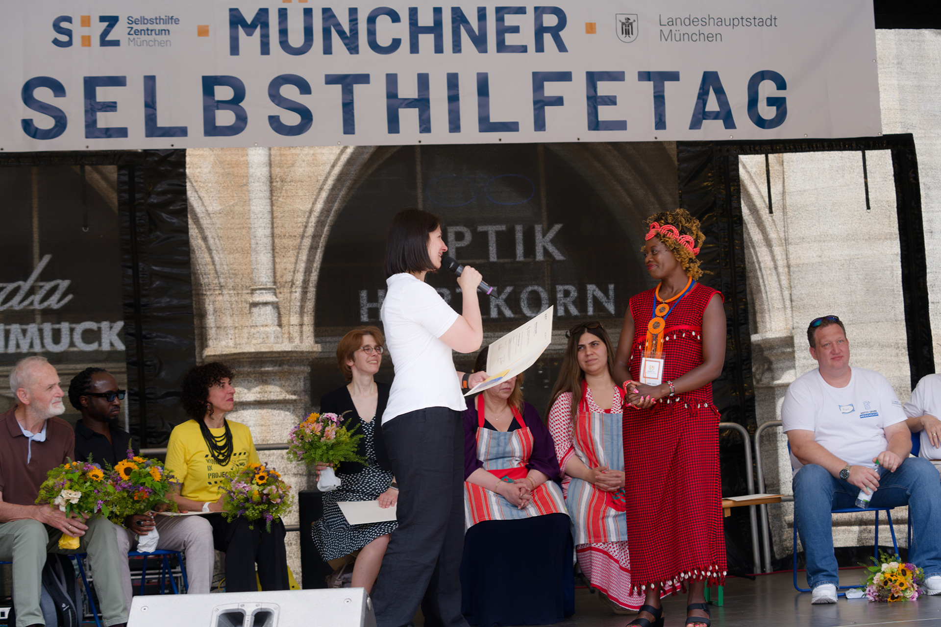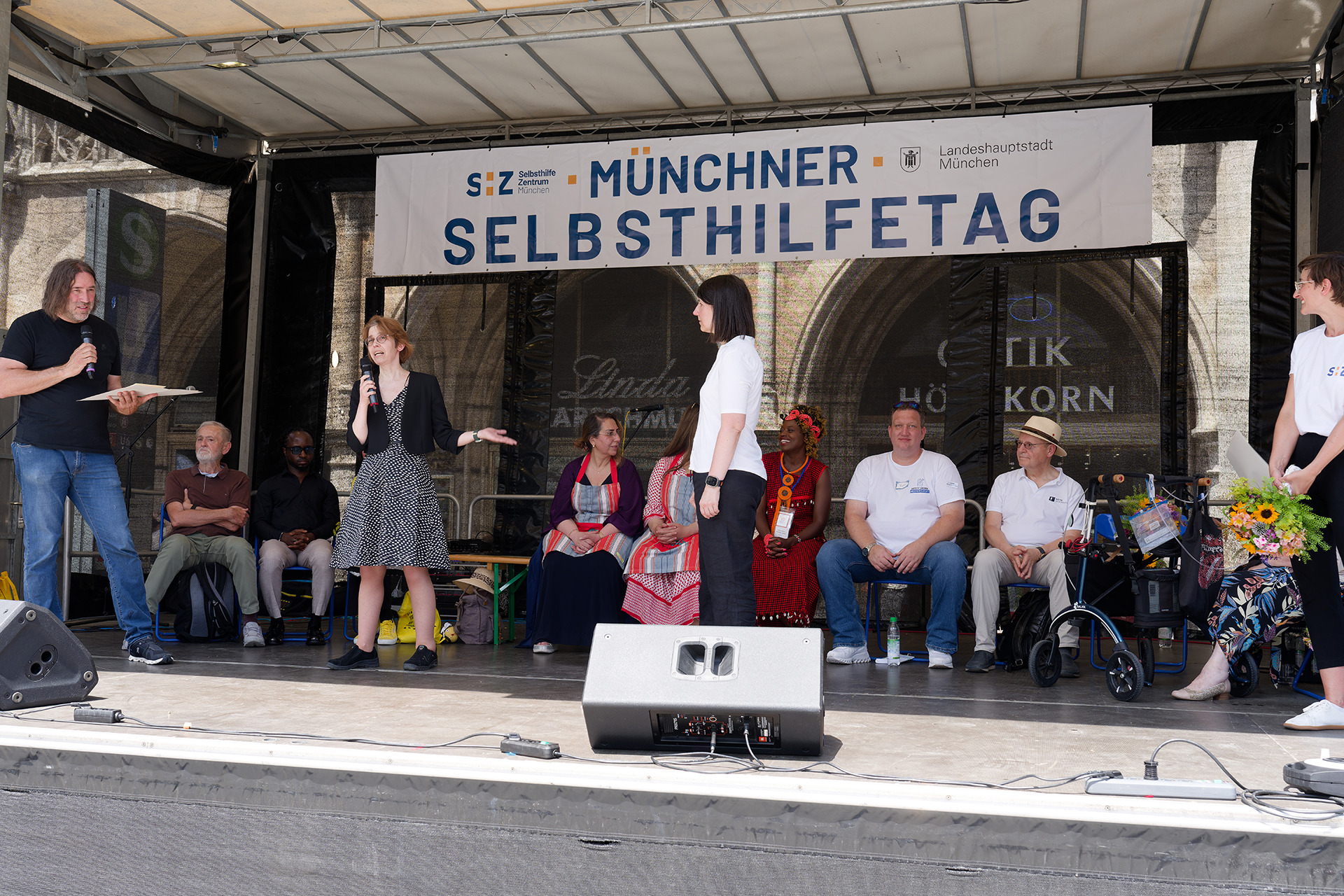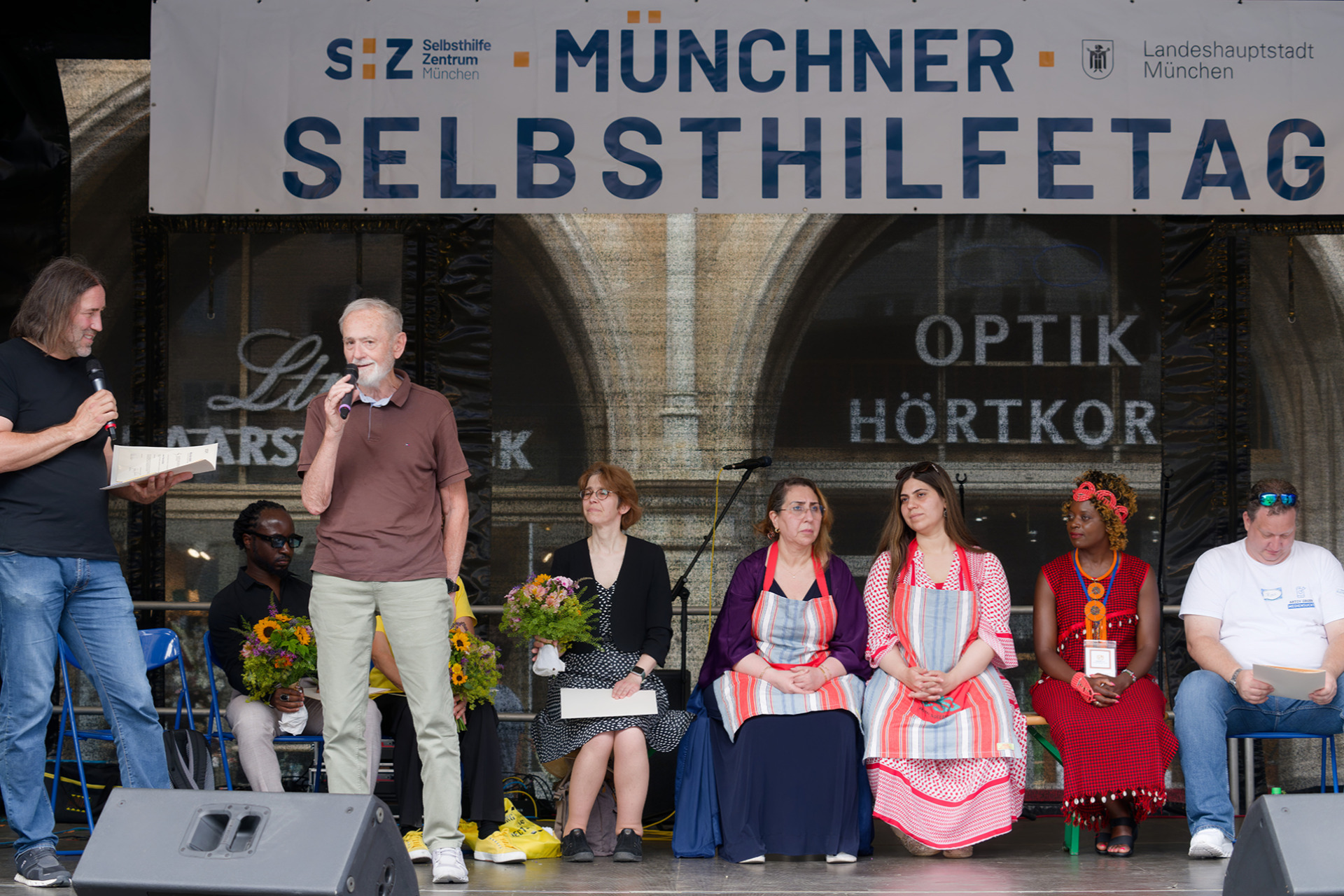 Ein Höhepunkt war die Verleihung von „München Dankt“: Dabei wurden zehn Engagierte aus der Münchner Selbsthilfe für ihre außergewöhnliche ehrenamtliche Tätigkeit geehrt. Verliehen wurden die Urkunden von zwei Stadträt*innen: Anne Hübner, Fraktionsvorsitzende der SPD Volt Fraktion, und Roland Hefter, SPD Volt Fraktion.
