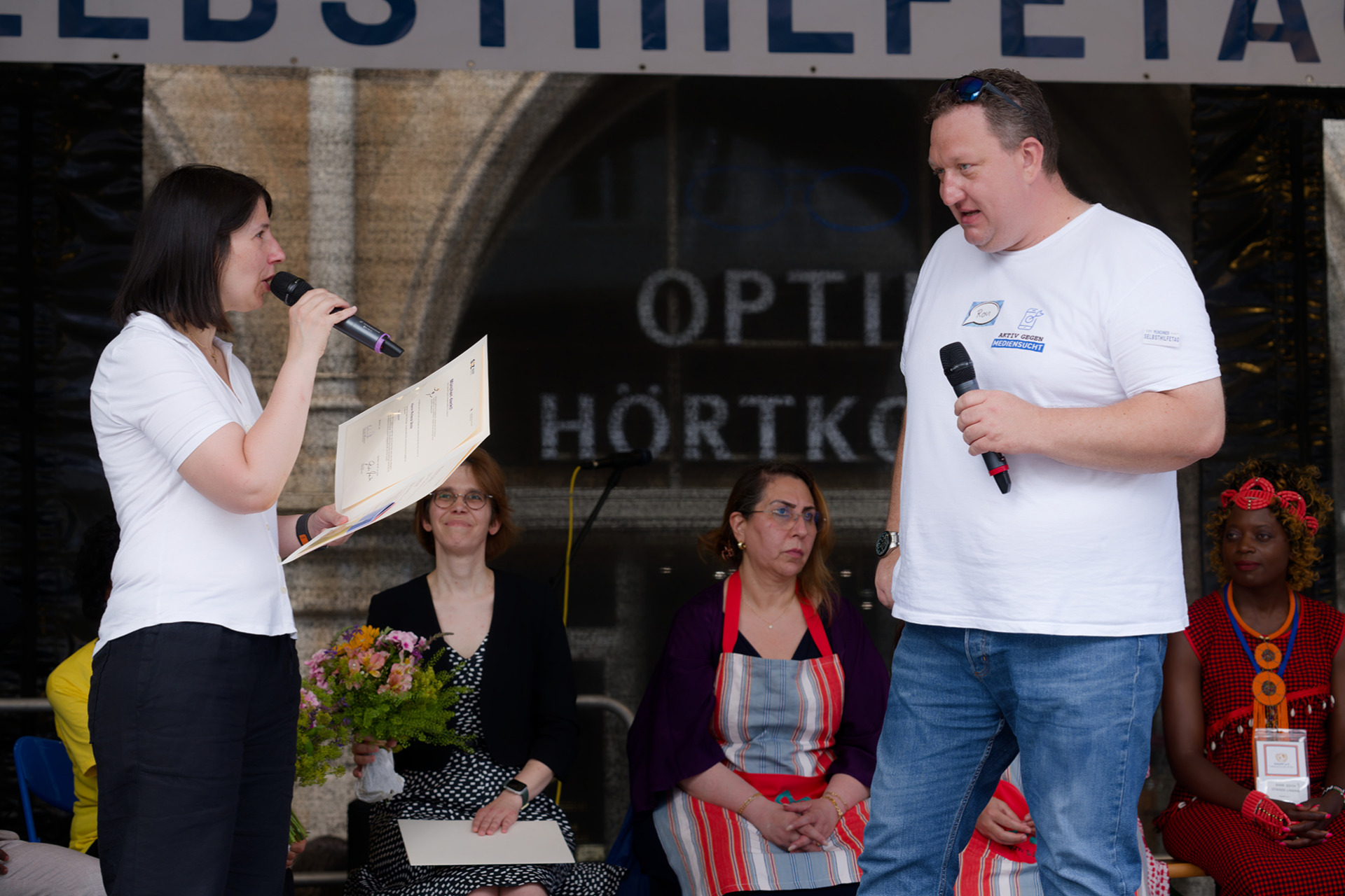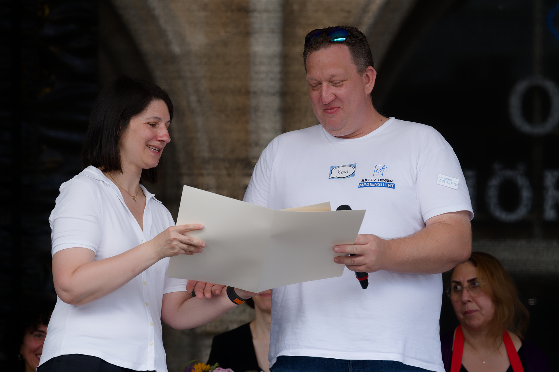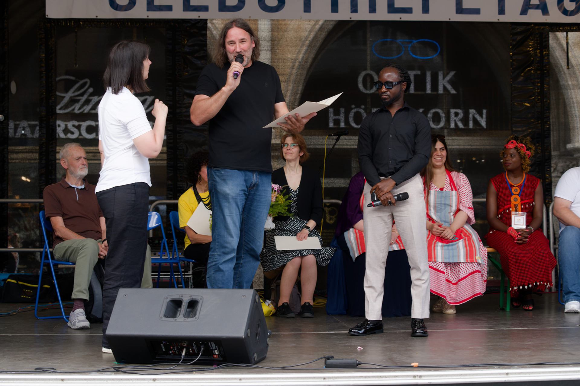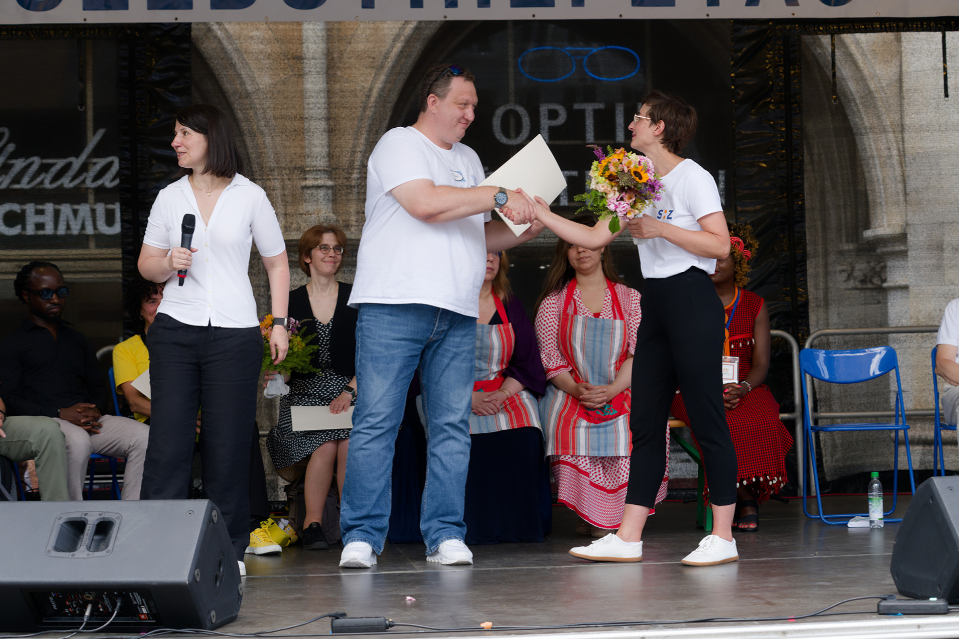 Ein Höhepunkt war die Verleihung von „München Dankt“: Dabei wurden zehn Engagierte aus der Münchner Selbsthilfe für ihre außergewöhnliche ehrenamtliche Tätigkeit geehrt. Verliehen wurden die Urkunden von zwei Stadträt*innen: Anne Hübner, Fraktionsvorsitzende der SPD Volt Fraktion, und Roland Hefter, SPD Volt Fraktion.