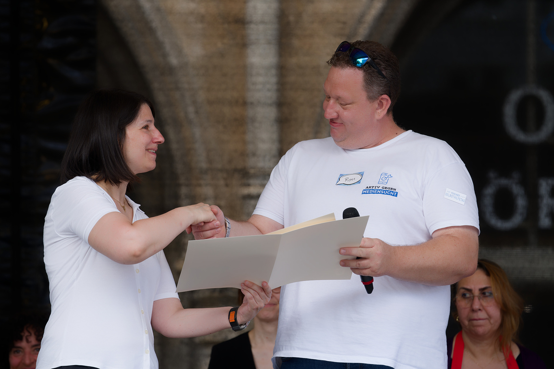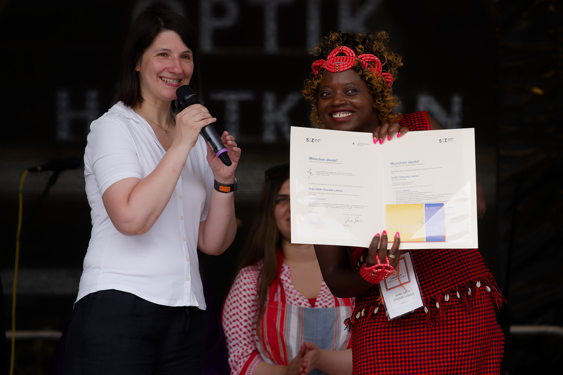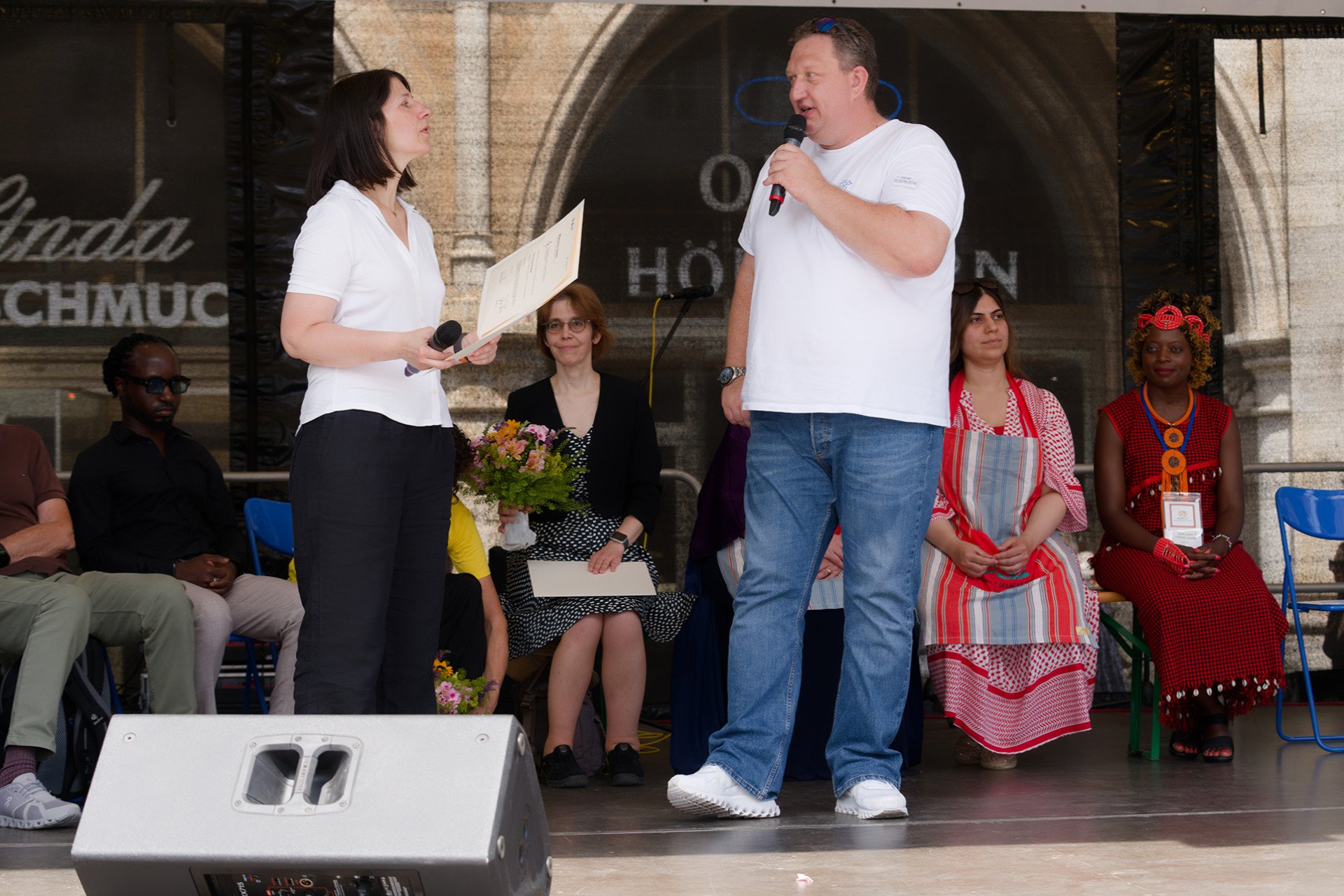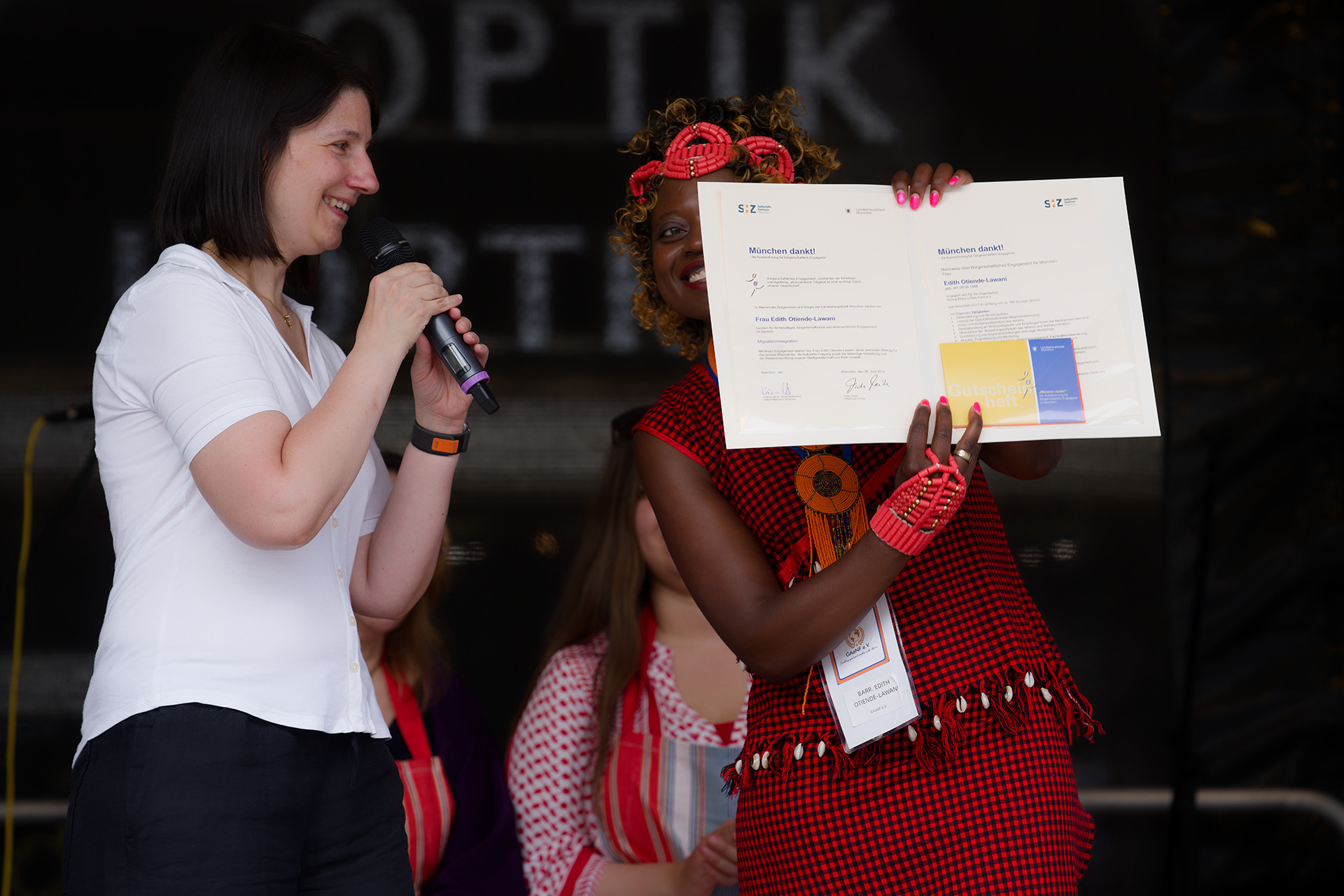 Ein Höhepunkt war die Verleihung von „München Dankt“: Dabei wurden zehn Engagierte aus der Münchner Selbsthilfe für ihre außergewöhnliche ehrenamtliche Tätigkeit geehrt. Verliehen wurden die Urkunden von zwei Stadträt*innen: Anne Hübner, Fraktionsvorsitzende der SPD Volt Fraktion, und Roland Hefter, SPD Volt Fraktion.