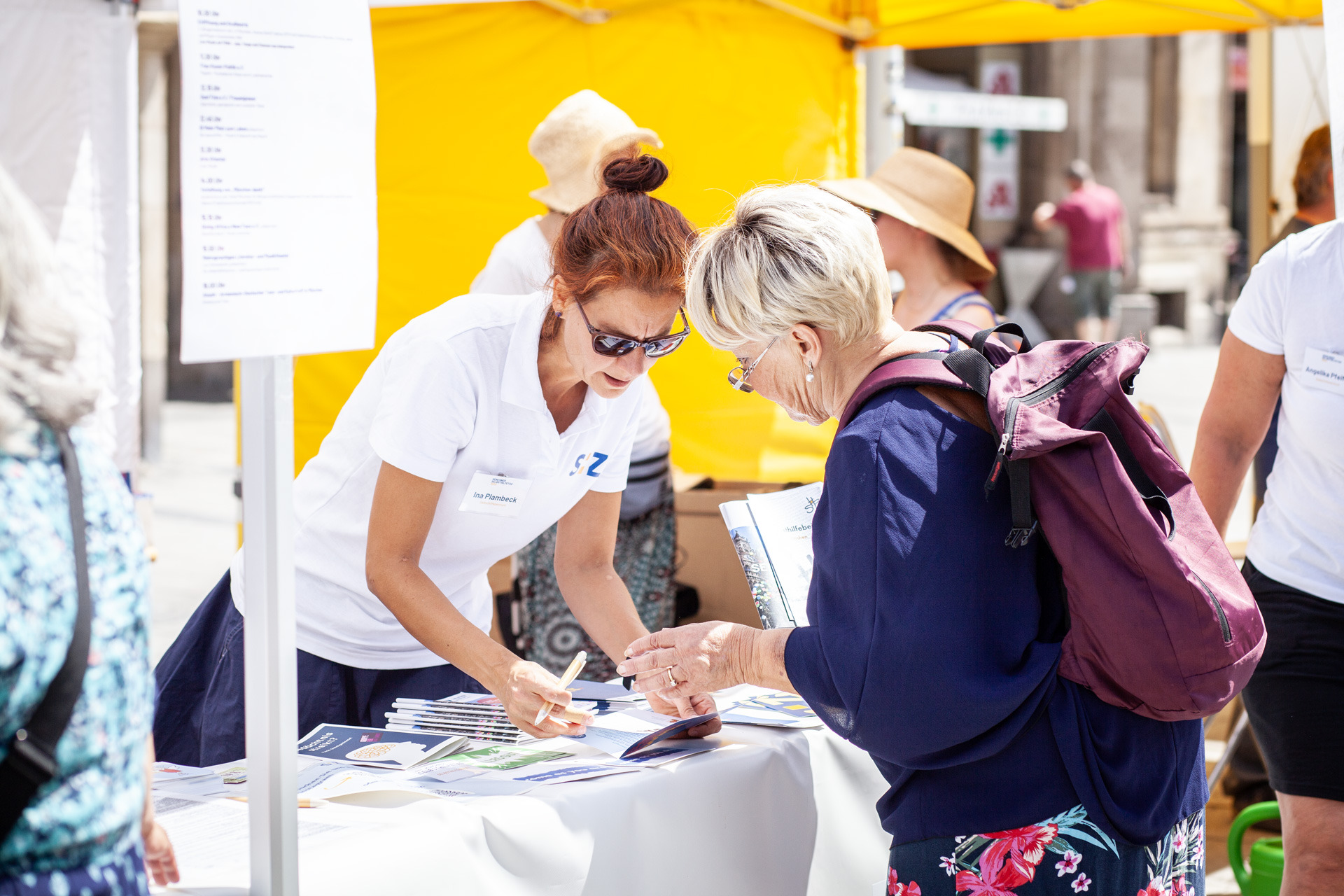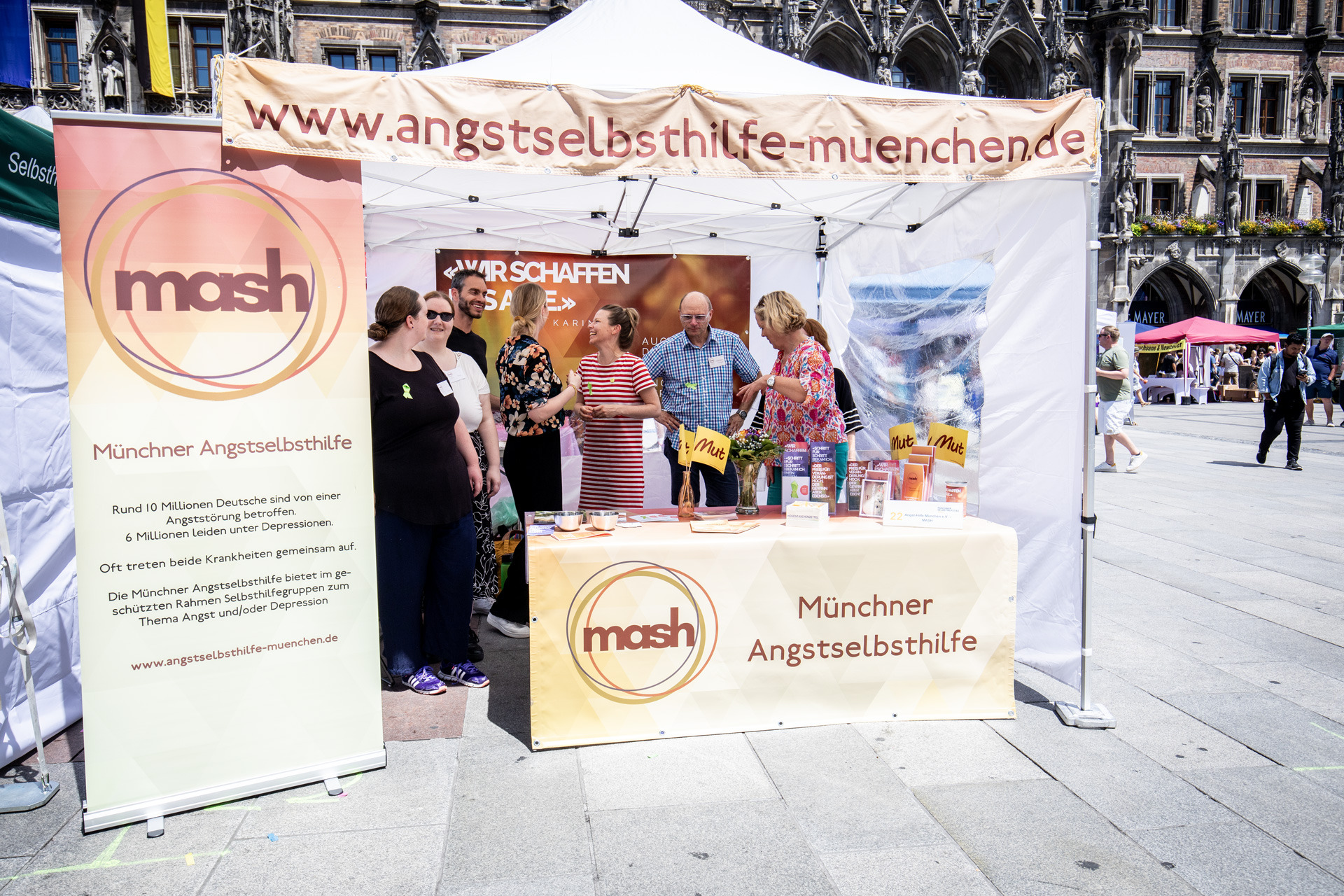 Am 6. Juli präsentierten sich den interessierten Besucher*innen auf dem Marienplatz rund 60 Selbsthilfegruppen.